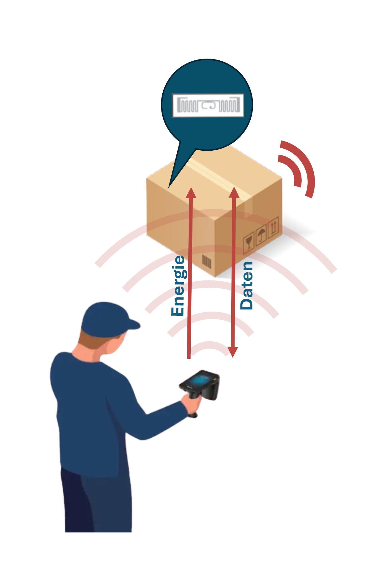 RFID-transponders zijn onderhoudsvrij, omdat ze geen eigen batterij nodig hebben. De benodigde energie halen ze rechtstreeks uit de radiogolven van de reader. Daardoor zijn ze bijzonder betrouwbaar en duurzaam – een duidelijk voordeel voor tal van toepassingen in industrie, logistiek en handel.