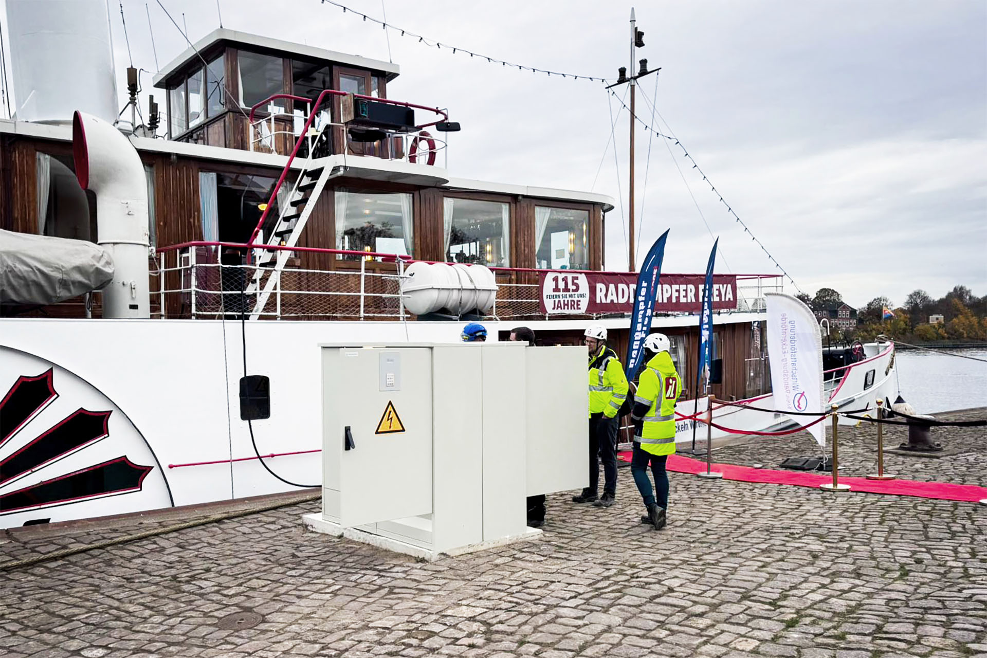 Luid draaiende motoren en de doordringende geur van scheepsdiesel bepalen in veel havens het beeld. In de Kreishaven Rendsburg waait nu echter een frisse wind: dankzij een nieuwe walstroominstallatie kunnen schepen hun motoren uitschakelen en zich tijdens de ligperiode direct vanaf het land van elektriciteit voorzien. Tot tien binnenvaartschepen en twee passagiersschepen kunnen hier nu emissiearm stroom afnemen terwijl zij aan de kade liggen.