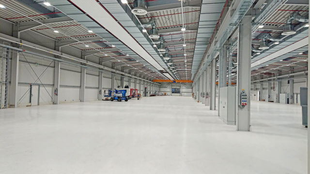 Een apart verbindingsgebouw voorziet de productiehal van diverse energiedragers en de data-infrastructuur. “De klant profiteert het meest van het aanpassingsvermogen van de productie,” vertelt onze projectleider Carsten Kremer. “Zo kan hij zeer snel reageren en de omschakelingskosten tot een minimum beperken.”